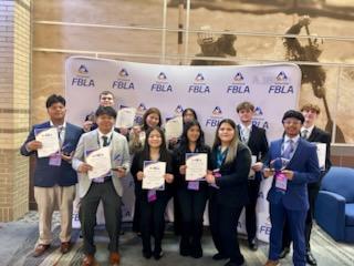 Congratulations to FBLA competitors who racked up 11 wins in the state competition. Marvin Velasquez placed first in UX Design, Javier Fuentes placed second in Exploring Economics, Kyland Kiser placed third in financial literacy, Gabriel Castaneda and Dawson Moore placed fourth in Sports and Entertainment Management, Jessica Gonzalez Martinez and Yuveiri Torales placed fourth in Community Service Project while Almabel Santiago and Maythe Fuentes placed eighth in Broadcast Journalism. Iris Velasquez placed eighth in Business Management, and Harsh Patel placed in Economics.
